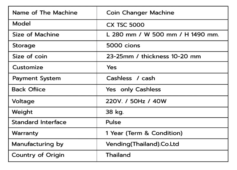 : Coin Exchange Model : CX-TSC 5000